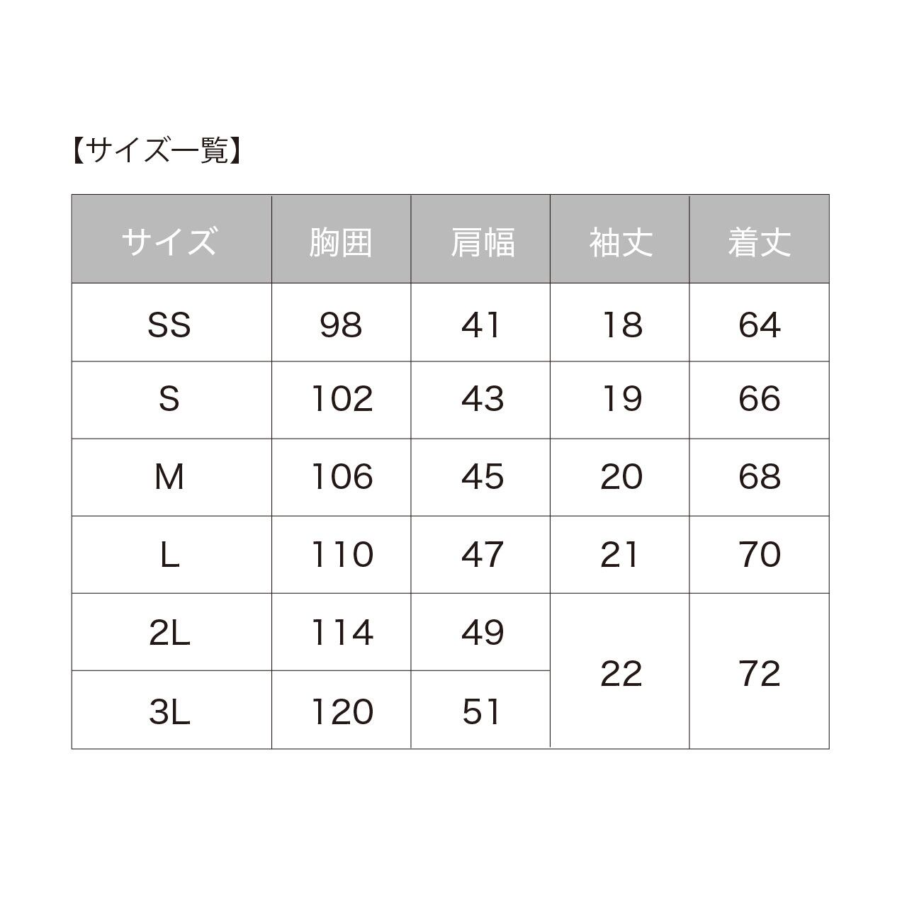 【サイズ】SS / S / M / L / 2L / 3L